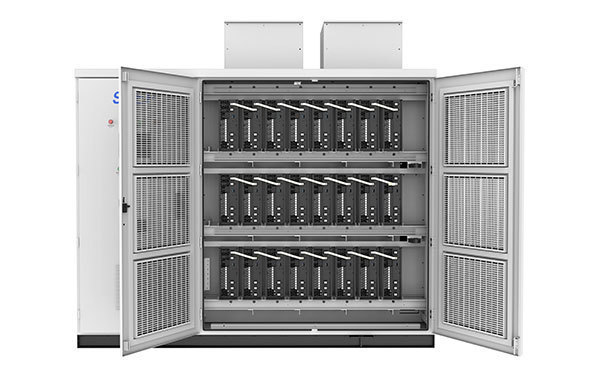 3. 一体化结构设计(10kV 2500kW以内)。将移相整流变压器,功率单元,控制柜,散热风机等设计到单个柜体结构中,实现了整体运输,整体安装,现场不需要并柜,不需要连接柜间电缆,不需要安装风机,调试方便很多,且整机的占地空间小,可以单面维护。下图为一体化变频器结构设计图。